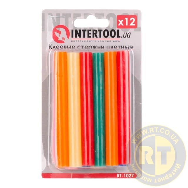 Комплект клейових стрижнів кольорових, 11,2×100 мм, 12 шт. INTERTOOL RT-1027