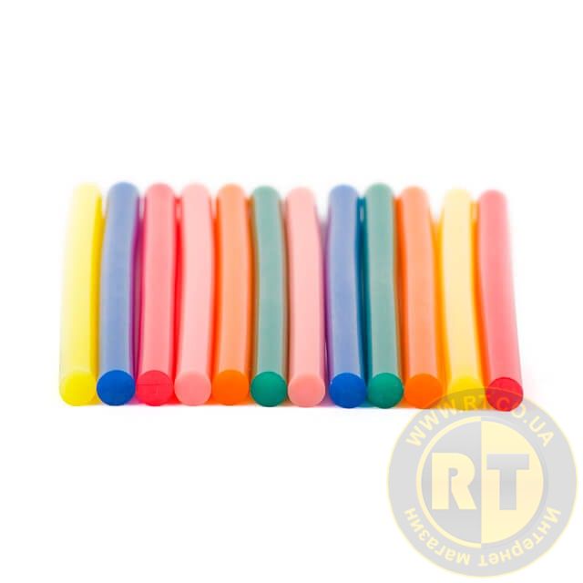Клейові стрижні різних кольорів універсальні, підходять для різних завдань. Термоклей кольоровий: синій, зелений, оранжевий, червоний, жовтий, рожевий. В упаковці по 2 стержні кожного з кольорів. Діаметр стрижня 11,2 мм - один із найпоширеніших і найпопулярніших розмірів, підходить до будь-яких марок клейових пістолетів. Сам стрижень довжиною 200 мм, в упаковці - 12 штук.