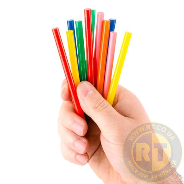Клейові стрижні різних кольорів універсальні, підходять для різних завдань. Термоклей кольоровий: синій, зелений, оранжевий, червоний, жовтий, рожевий. В упаковці по 2 стержні кожного з кольорів. Діаметр стрижня 7,4 мм - один із найпоширеніших і найпопулярніших розмірів, підходить до будь-яких марок клейових пістолетів. Сам стрижень довжиною 100 мм, в упаковці - 12 штук.