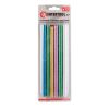 Кольорові клейові стержні з блискітками, в комплекті 6 кольорів: срібло, золото, червоний, бузковий, зелений, синій. Діаметр стрижня 7,4 мм - один із найпоширеніших і найпопулярніших розмірів, підходить до будь-яких марок клейових пістолетів. Сам стрижень довжиною 200 мм, в упаковці - 12 штук.