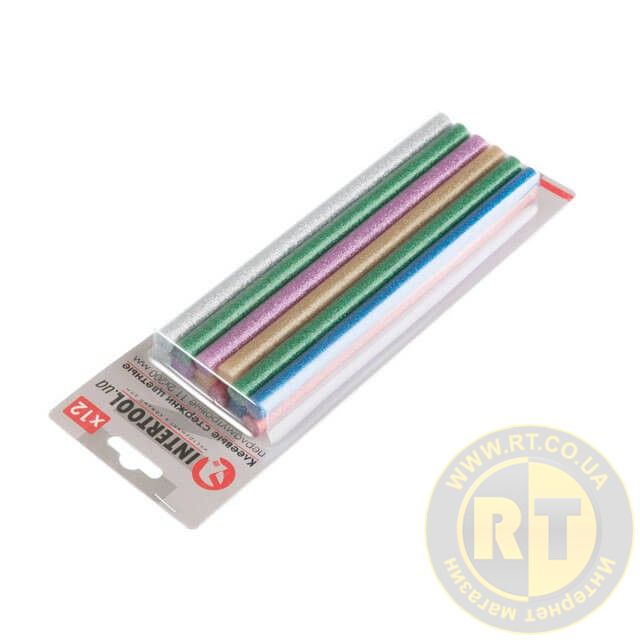 Комплект клейових стрижнів кольорових перламутрових, 11,2мм× 200 мм, 12 шт. INTERTOOL RT-1035