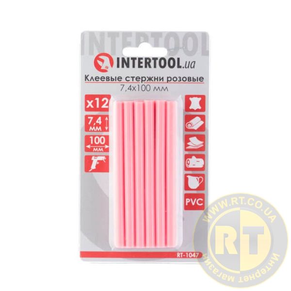 Комплект клейових стрижнів рожевих, 7,4×100 мм, 12 шт. INTERTOOL RT-1047