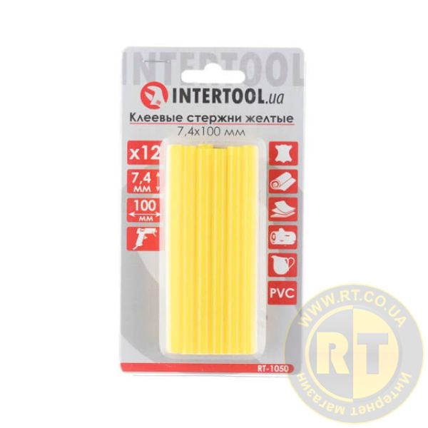 Комплект клейових стрижнів жовтих, 7,4×100 мм, 12 шт. INTERTOOL RT-1050