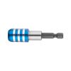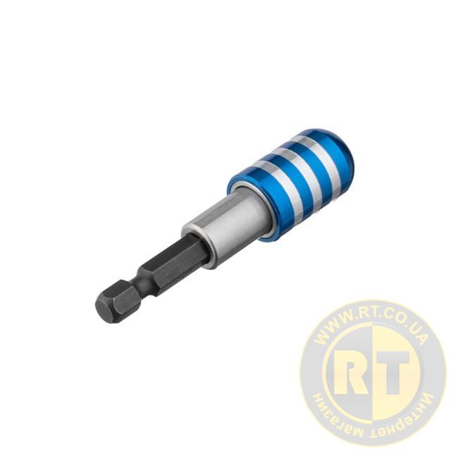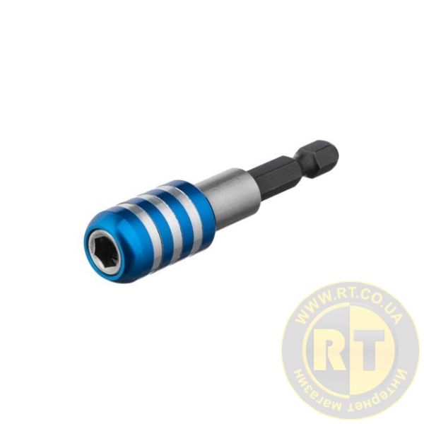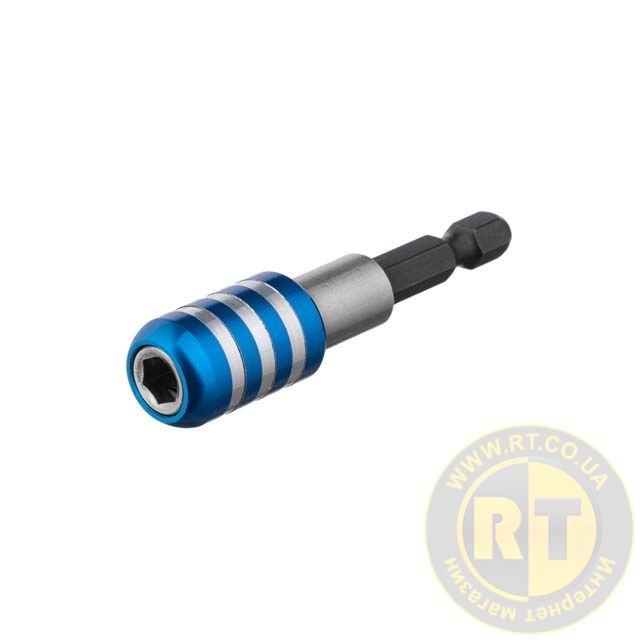В тримачі встановлений магніт, силою 400 г, який надійно фіксує біти і полегшує вкручування гвинтів. Окрім магніту реалізований фіксатор, який виключає випадіння біт під час роботи. Насадки легко встановлюються в тримач одним натисненням, а відтягнувши втулку назад ви легко їх дістанете. Така конструкція дозволяє швидко змінювати біти і надійно їх утримувати.