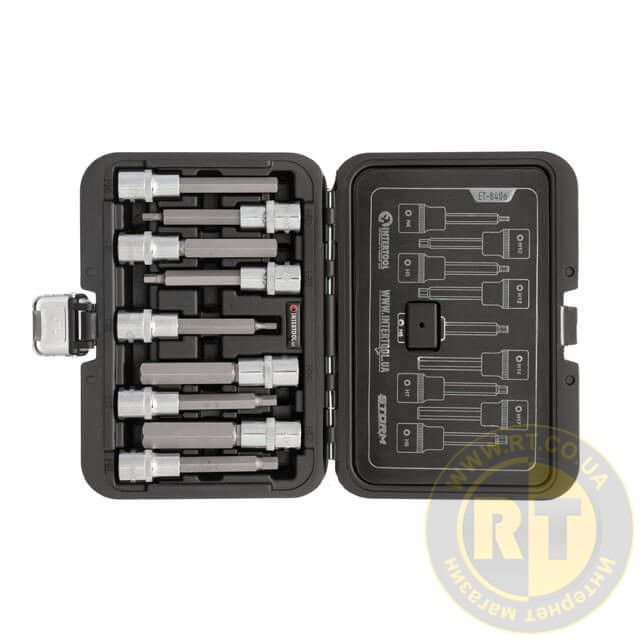 Набір біт HEX у кейсі, 1/2", S2, H4-H17, 100 мм, STORM INTERTOOL ET-8406