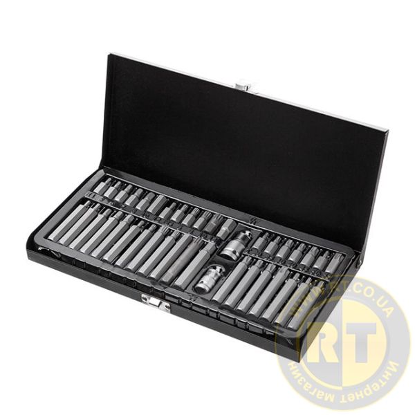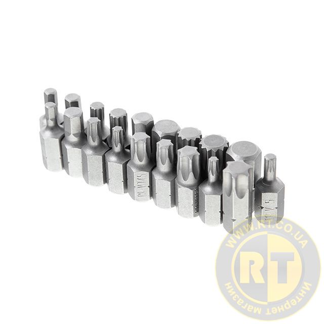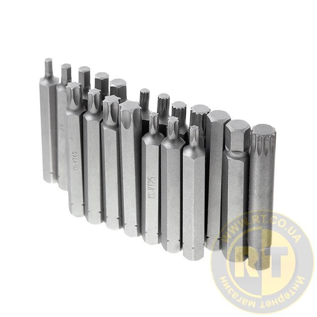Насадки виготовлені з якісної інструментальної сталі з точними наконечниками, які гарантують надійне зчеплення зі шліцом кріплення. Різноманіття біт та шестигранників (TORX, HEX, Spline) у двох розмірах - 30 та 75 мм - дозволяють ефективно працювати у важкодоступних місцях та вузьких заглибленнях.