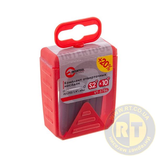 Комплект насадок до викруток PZ1/PZ2, 1/4", 60 мм, уп. 10 шт. INTERTOOL VT-5786