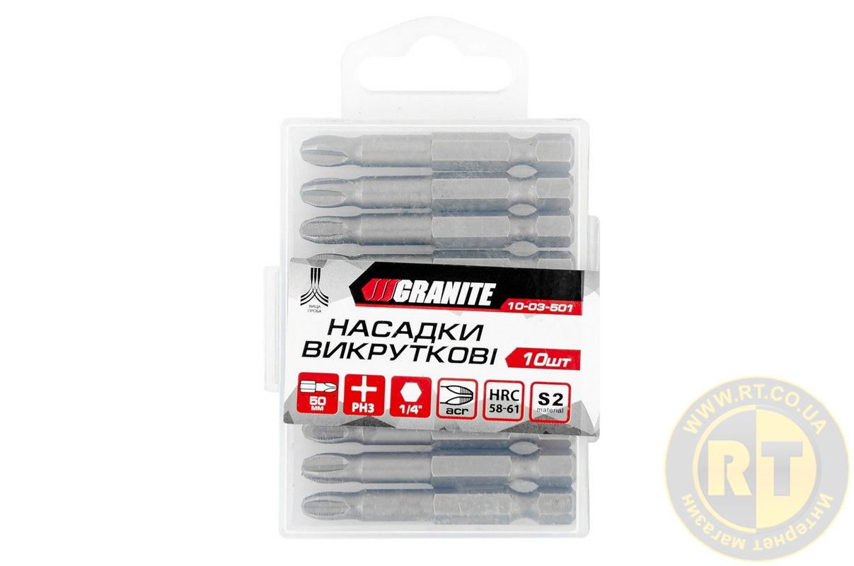 Насадка викруткова PH3 50 мм 1/4" S2 набір 10 шт MASTERTOOL 10-03-501