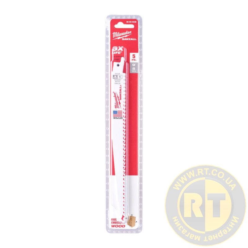 Полотно для шабельних пилок THIN KERF FANG TIP MILWAUKEE, 230/5,0мм, (5шт), (дерево з цвяхами)