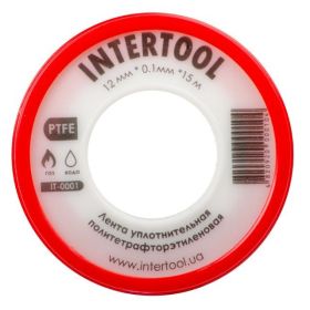 Стрічка тефлонова, фум (политетрафторетиленова), 15 м, 12×0,1 мм, 0,2 г/см³ INTERTOOL IT-0001