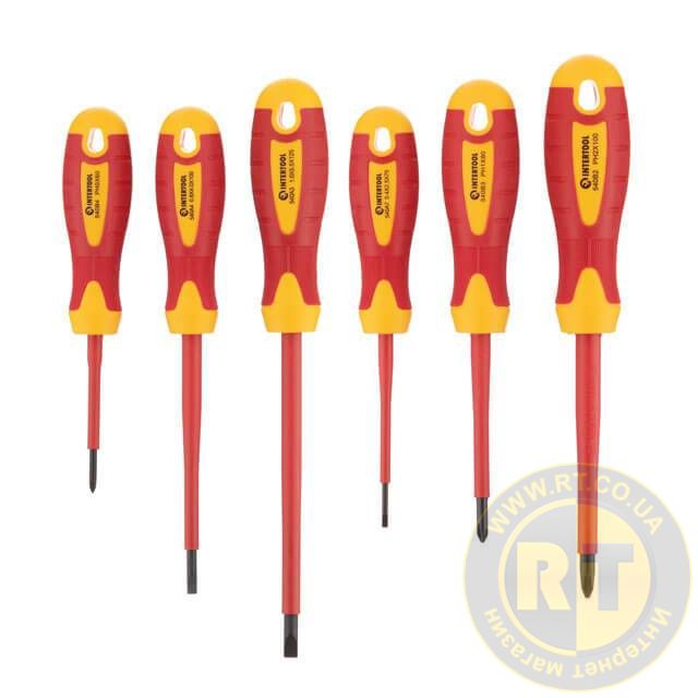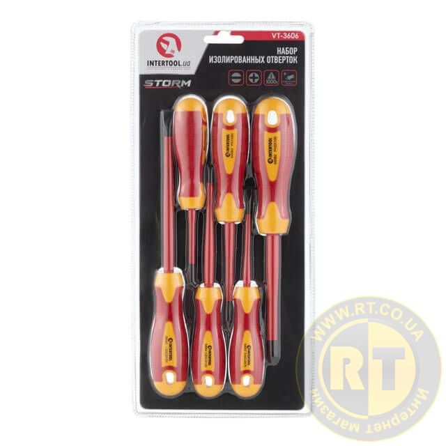 Набір ізольованих викруток, 6 од., VDE, Cr-V, 60-125 мм (SL0,4×2,5 мм, SL0,8×4,0 мм, SL1×5,5 мм, PH0, PH1, PH2) STORM INTERTOOL VT-3606