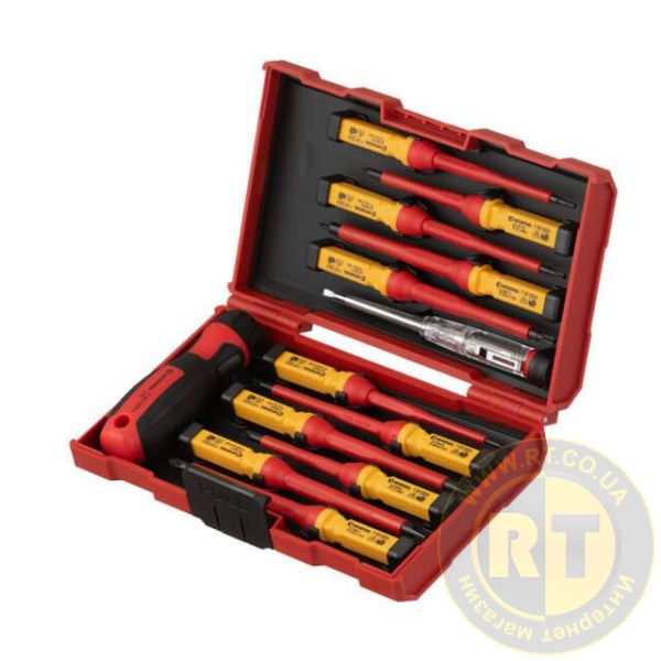 Набір ізольованих викруток з індикатором напруги, 14 од., VDE, Cr-V, 80-100 мм (SL0,5, SL0,8, SL1, SL1,2, PH1, PH2, PZ1, PZ2, T10, T15, T20) STORM INTERTOOL VT-3614