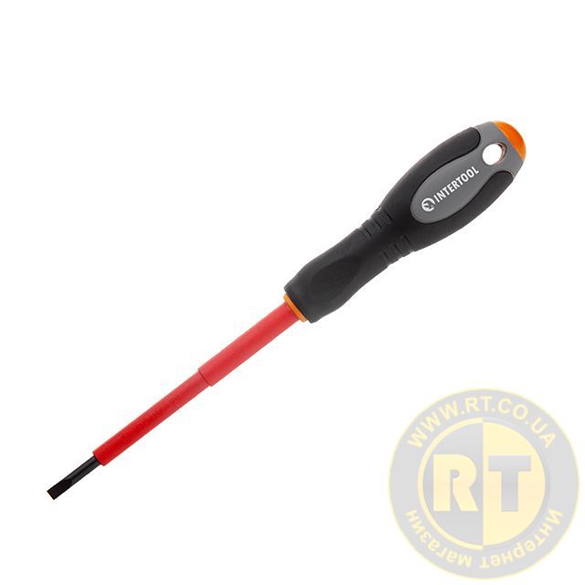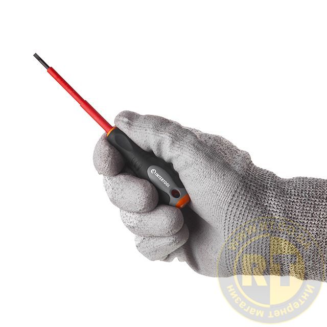 Електроізольована викрутка INTERTOOL призначена для безпечної та зручної роботи з електромережами, запобіжниками, перемикачами та різними приладами, під напругою до 1000 В.