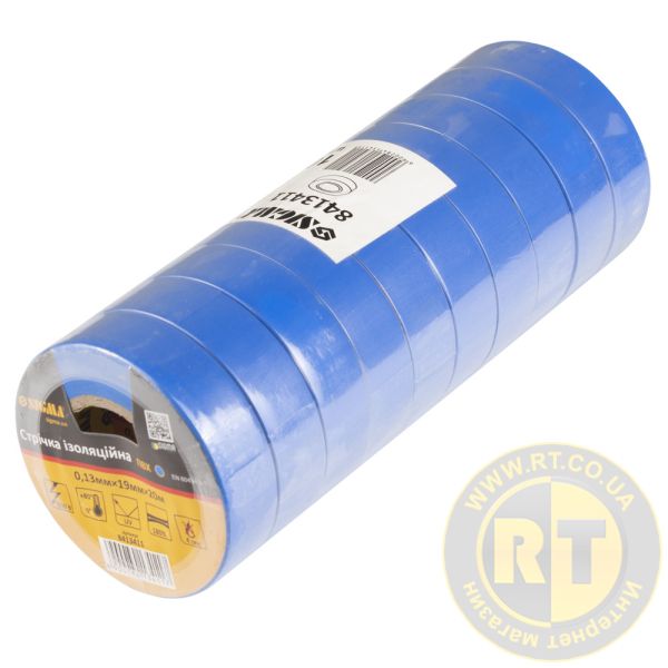 Стрічка ізоляційна ПВХ (синя) 0.13мм×19мм×20м SIGMA (8413411) - м'яка ПВХ-плівка з матовою обробкою застосовується в побуті та на виробництві як ізоляційний матеріал для проводів і кабелів, при ремонті та зрощуванні електрокабелів з неметалічні матеріалів.