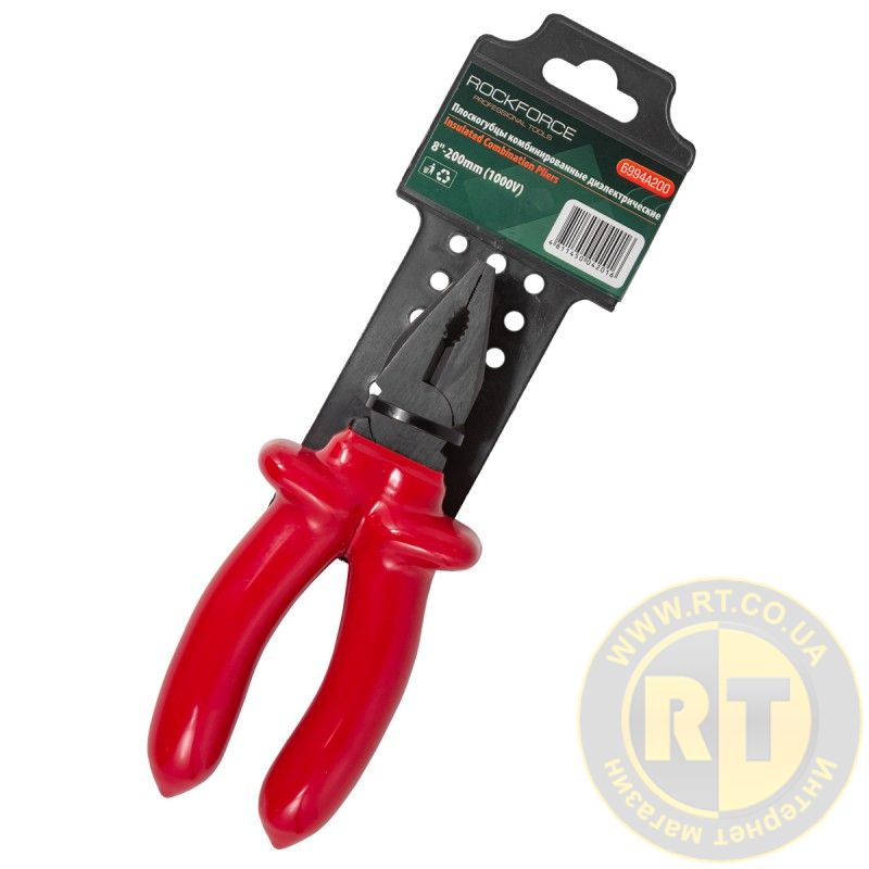 Плоскогубці комбіновані діелектричні 8"-200мм (1000V), на пластиковому утримувачі ROCKFORCE FORSAGE RF-6994A200