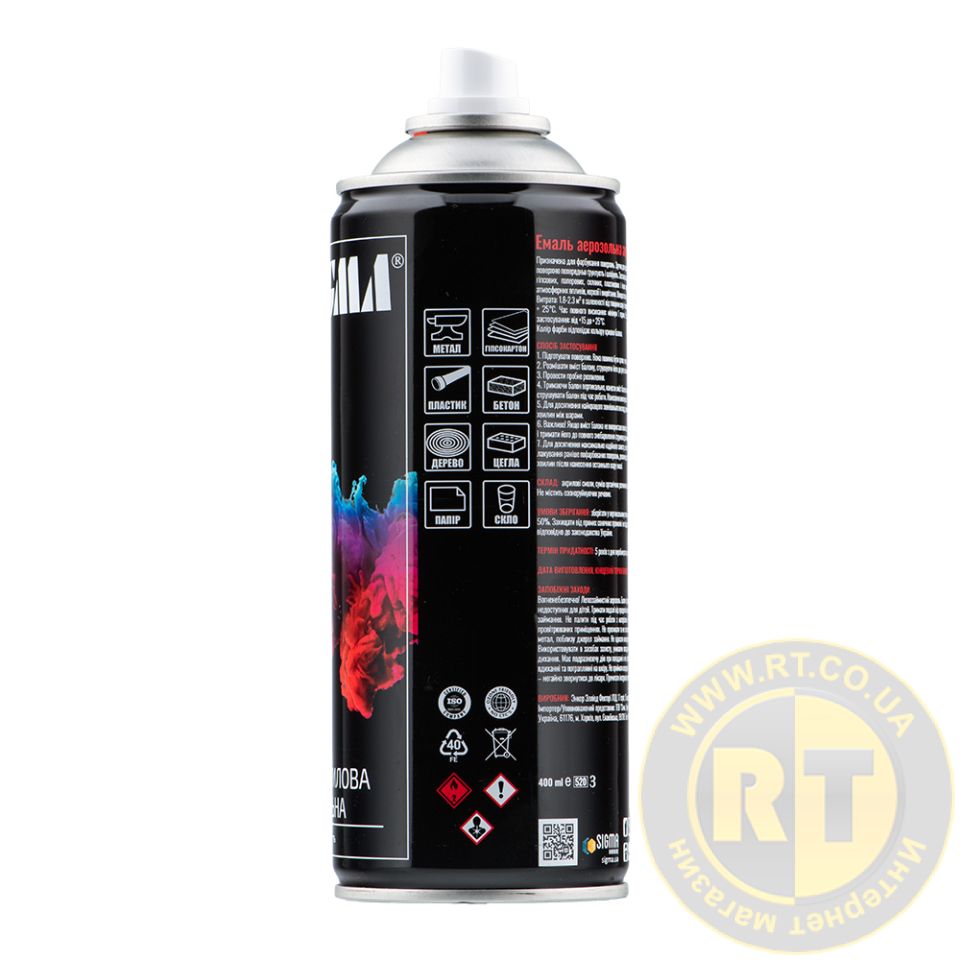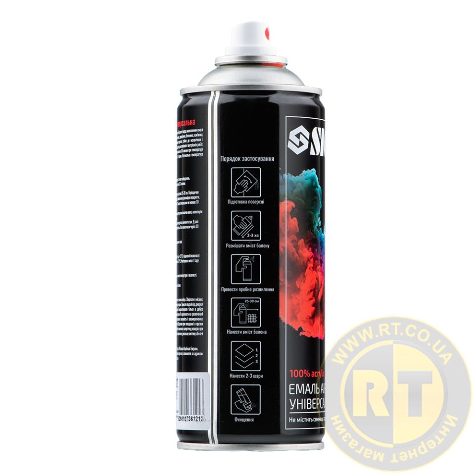 100% акрилова, швидковисихаюча аерозольна емаль з прекрасною адгезією до більшості поверхонь утворює покриття з підвищеними характеристиками яскравості.