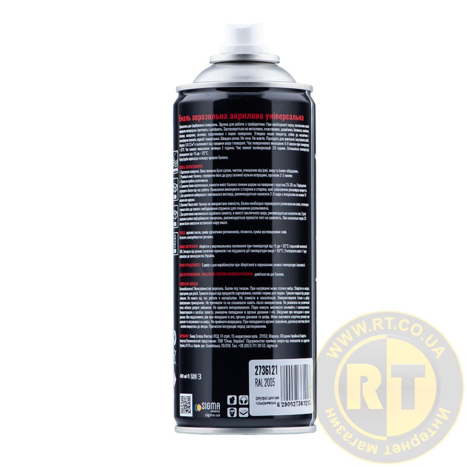 Емаль аерозольна акрилова флуоресцентна 400мл RAL 2005 (помаранчевий) SIGMA (2736121)