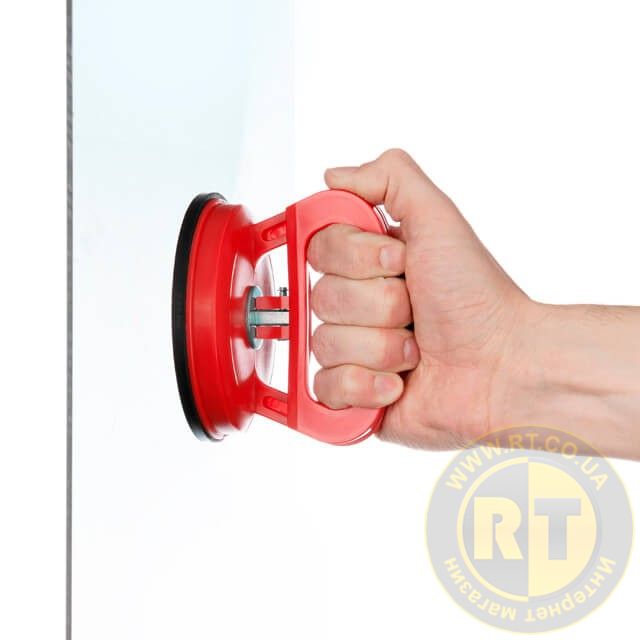 Складається така присоска з пластикової ручки-тримача та шару високоякісної гуми, завдяки якій тримається скло. Проста та надійна конструкція збільшує ефективність роботи.