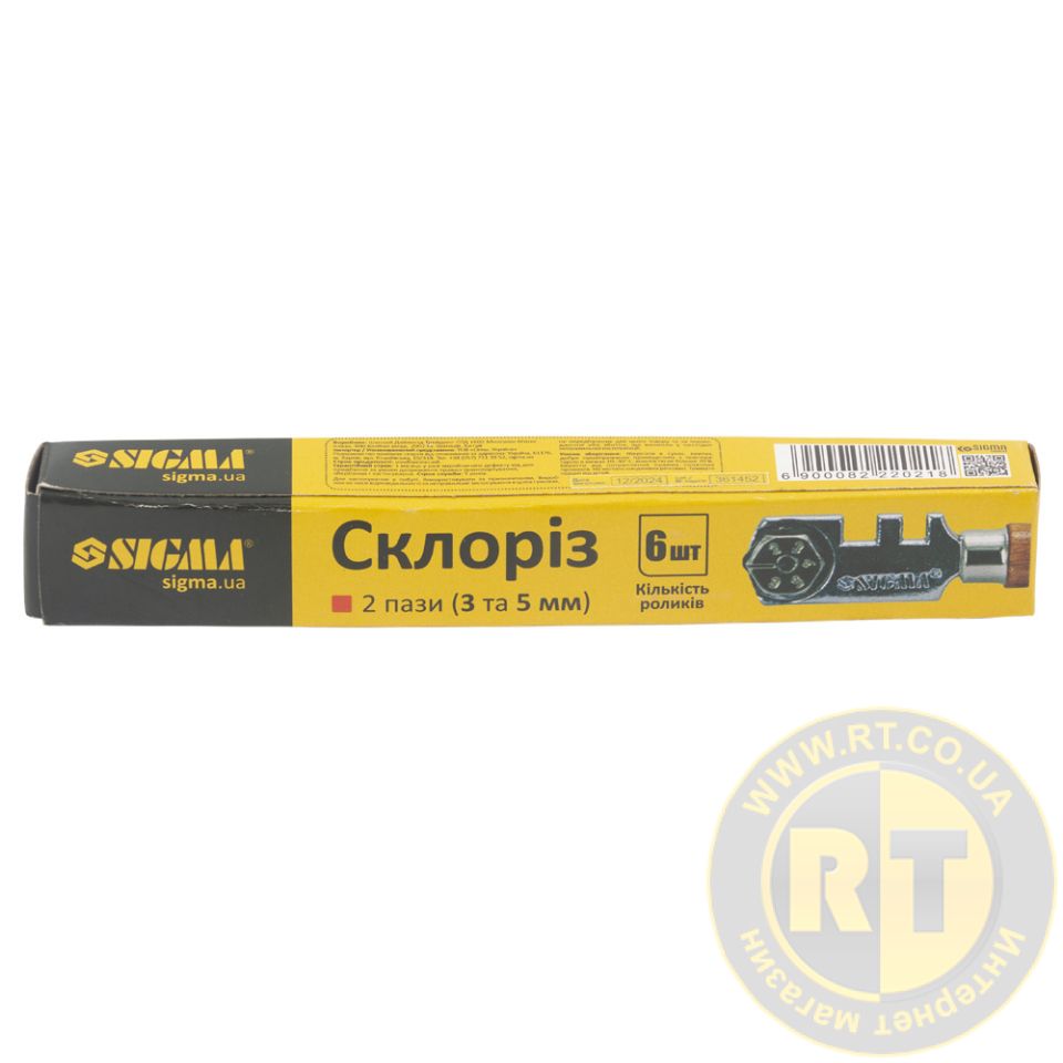 Склоріз 6-ти роликовий SIGMA (8222021) складається з 6 ріжучих роликів, що легко замінюються, має 2 пази (3мм і 5мм) для відламування скла. Зручна дерев'яна лакована ручка. Призначений для ручного різання скла завтовшки 3-8мм.
