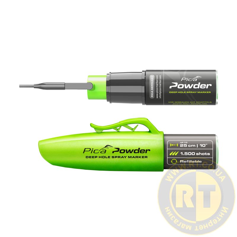 крейдяний порошок . • Розпилювальна форсунка на 360° для важкодоступних місць • З ефективним захистом від пилу та вологи • Ідеально підходить для дерев'яних, електротехнічних, сантехнічних та будівельних робіт • Прилипає до всіх поверхонь – сухих, вологих, шорстких, гладких тощо. • Легко знімається з гладких поверхонь • Швидке використання заощаджує час