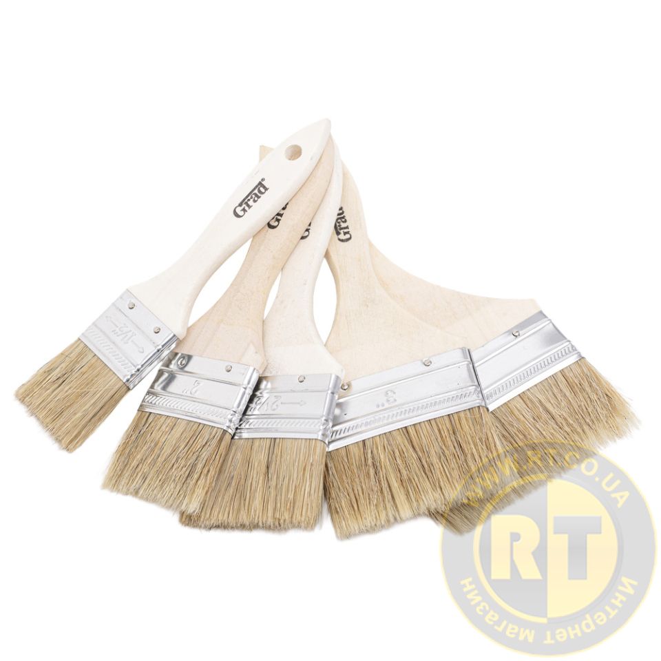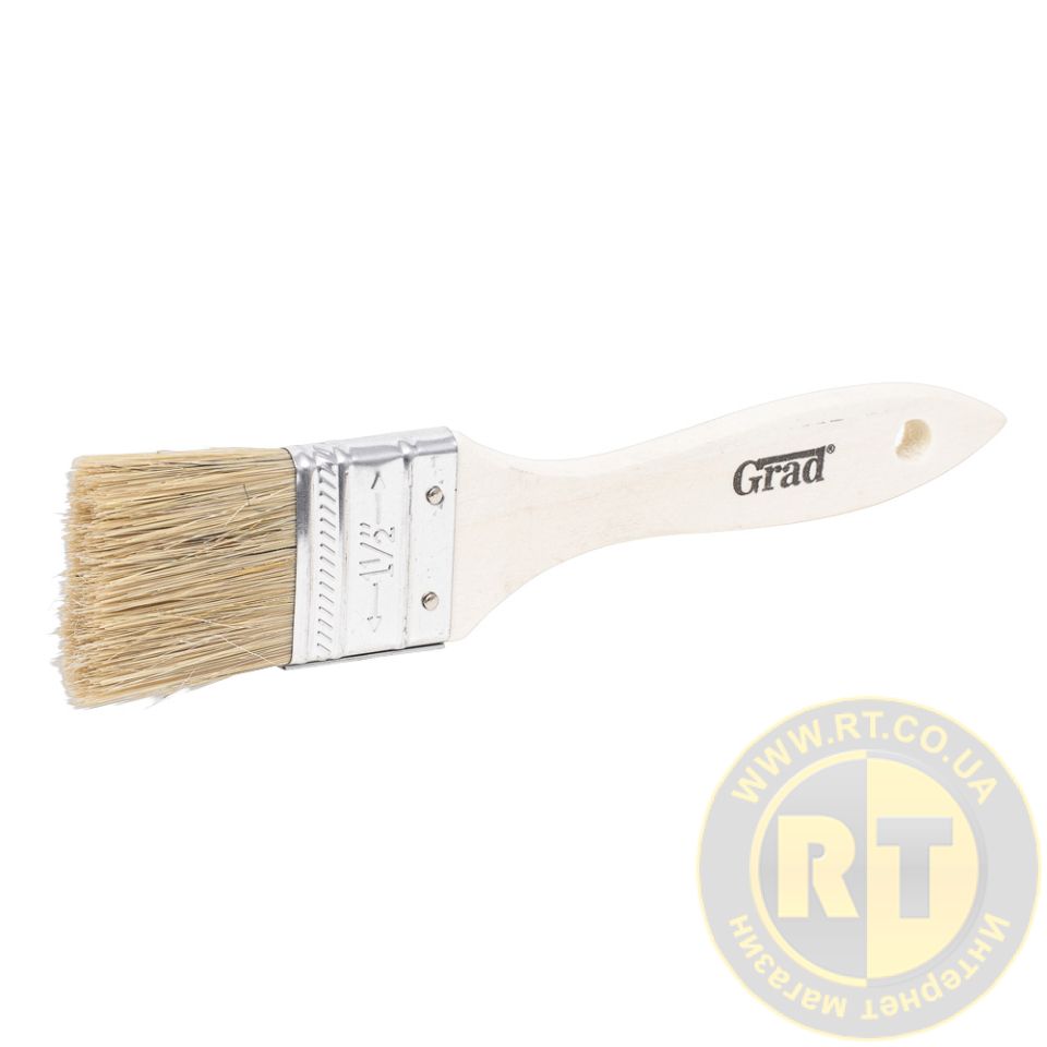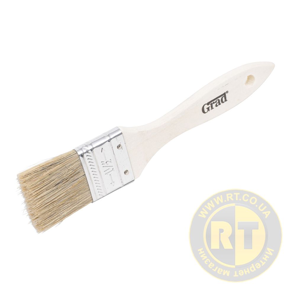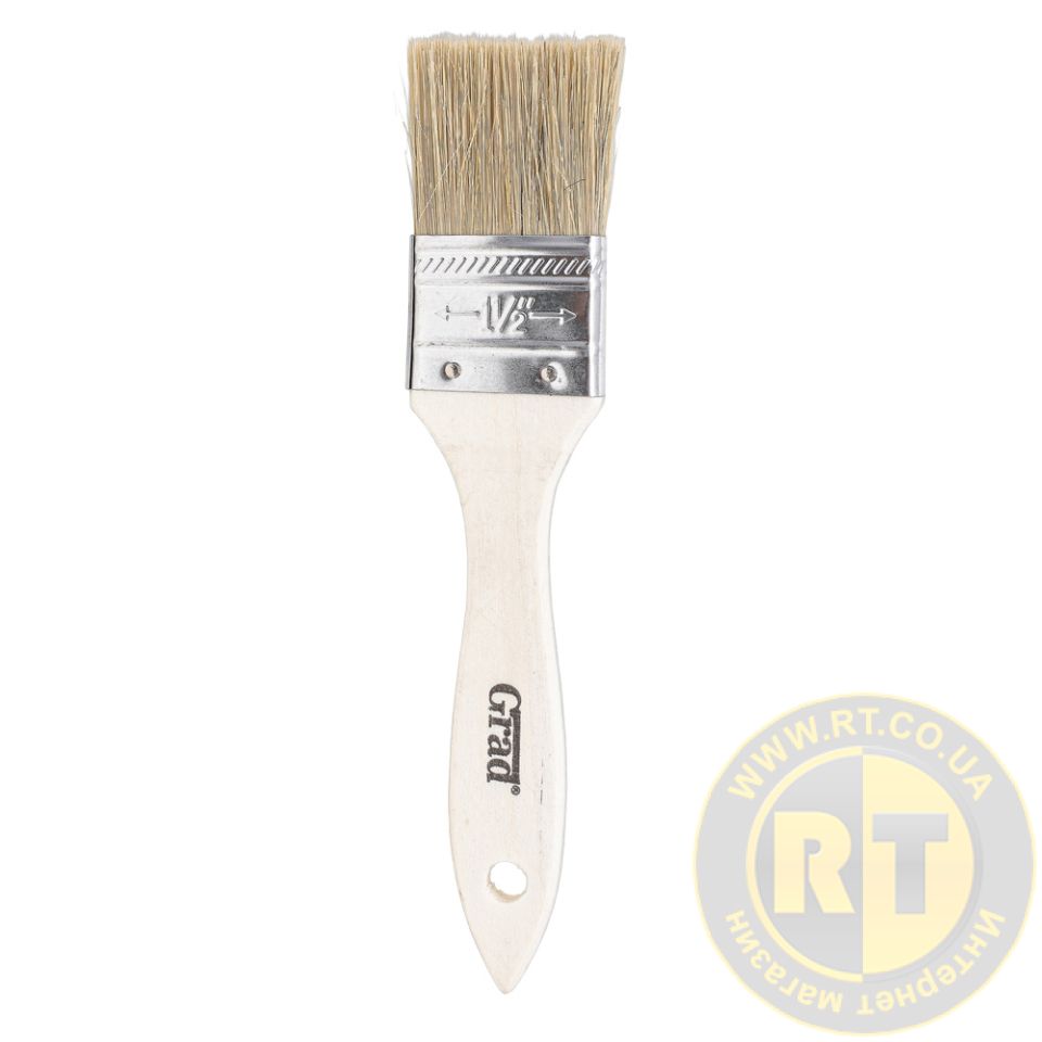 Пензель флейцевий економ 1.5” GRAD (8301135) виготовлений з натуральної щетини для роботи з усіма видами лакофарбової продукції, в тому числі і агресивними.