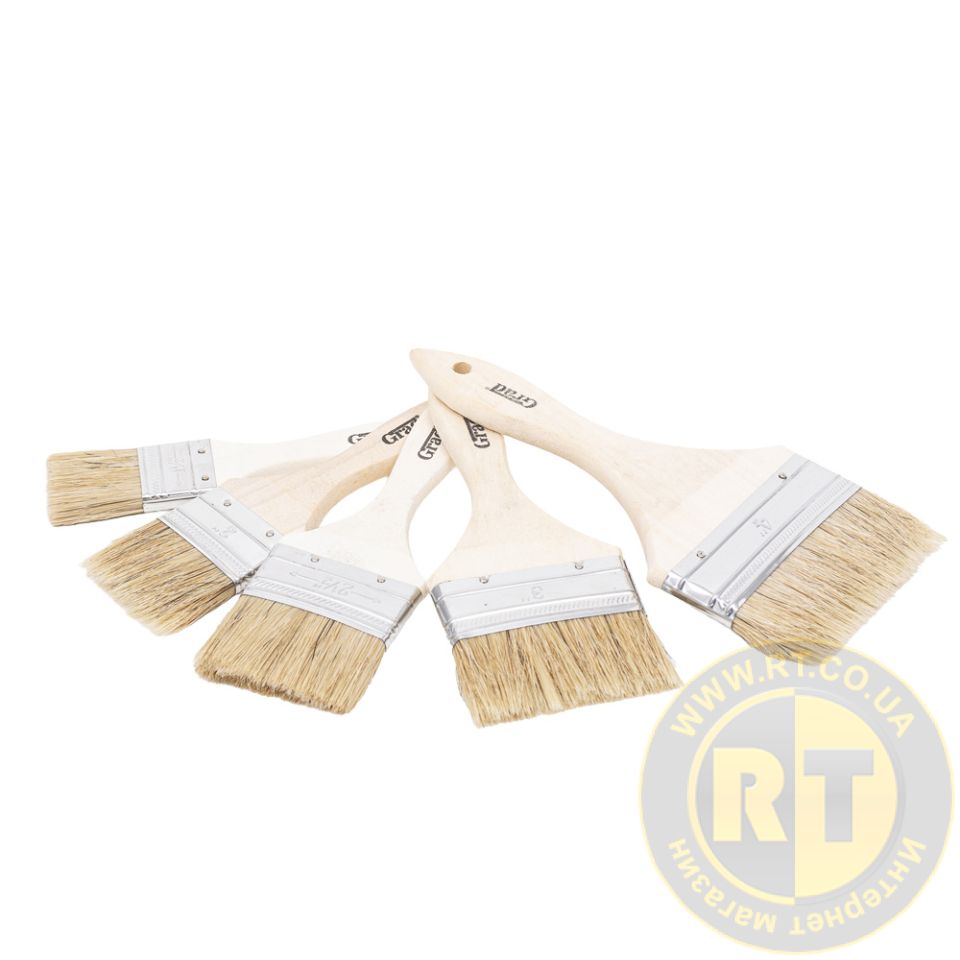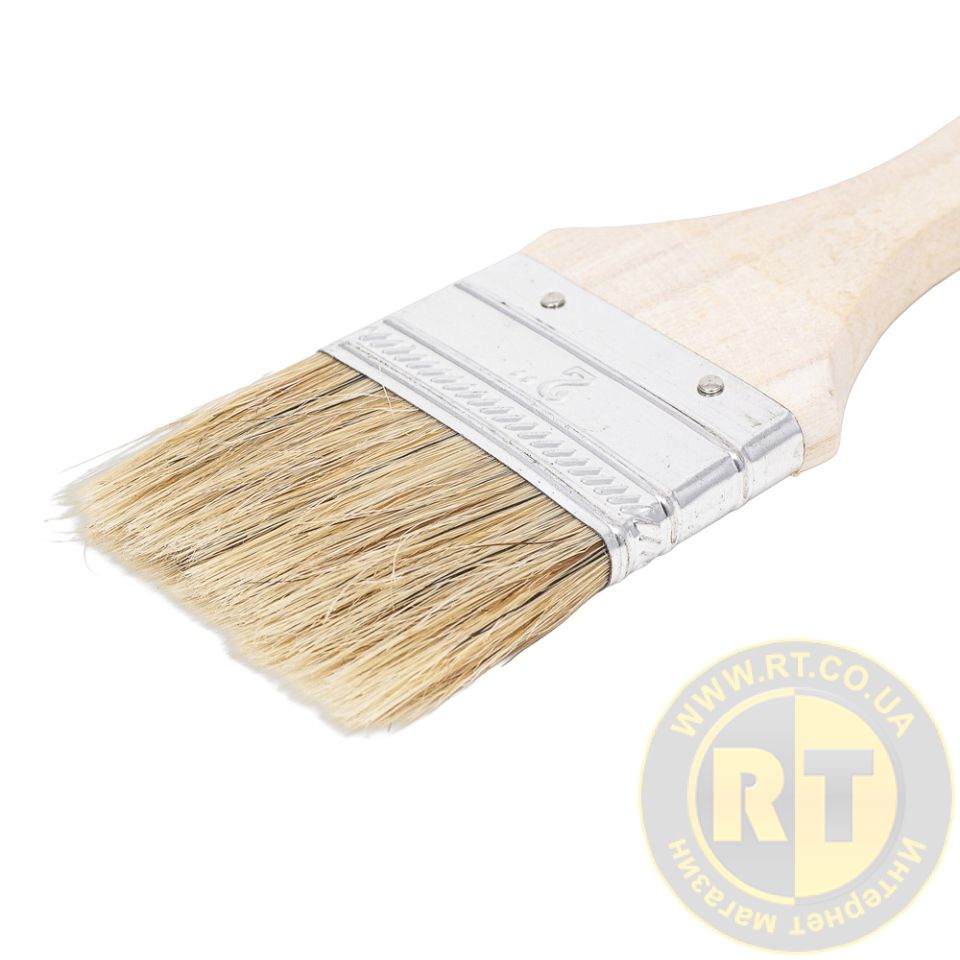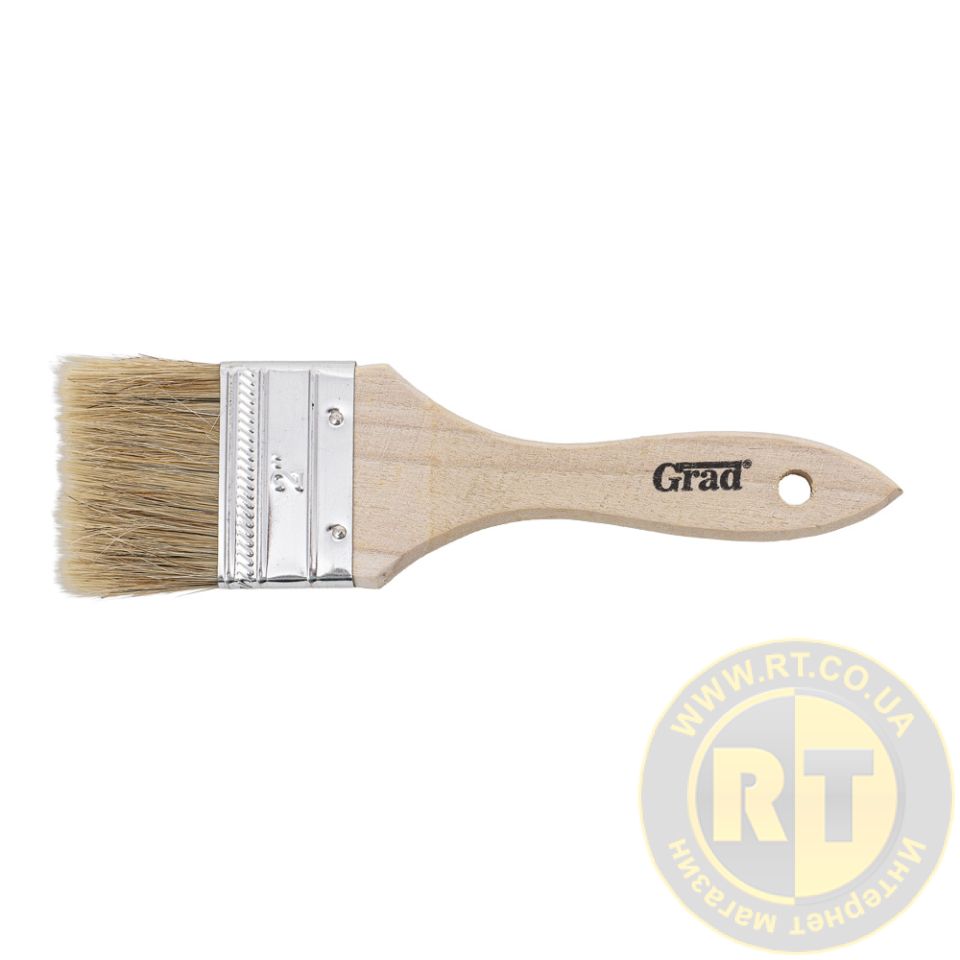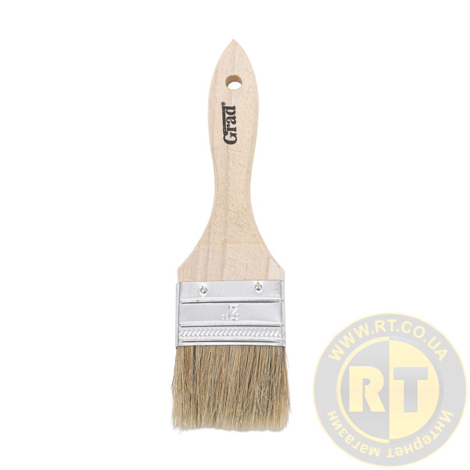 Пензель флейцевий економ 2" GRAD (8301145) виготовлений з натуральної щетини для роботи з усіма видами лакофарбової продукції, в тому числі і агресивними.
