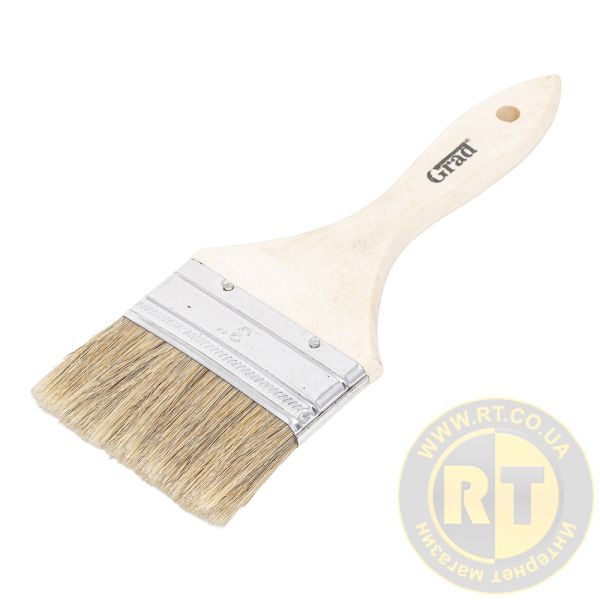 Пензель флейцевий економ 3" GRAD (8301165) виготовлений з натуральної щетини для роботи з усіма видами лакофарбової продукції, в тому числі і агресивними.