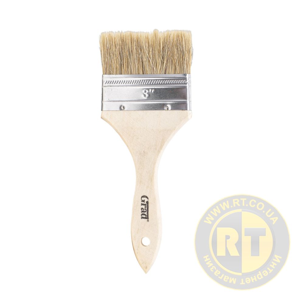 Пензель флейцевий економ 3" GRAD (8301165) виготовлений з натуральної щетини для роботи з усіма видами лакофарбової продукції, в тому числі і агресивними.