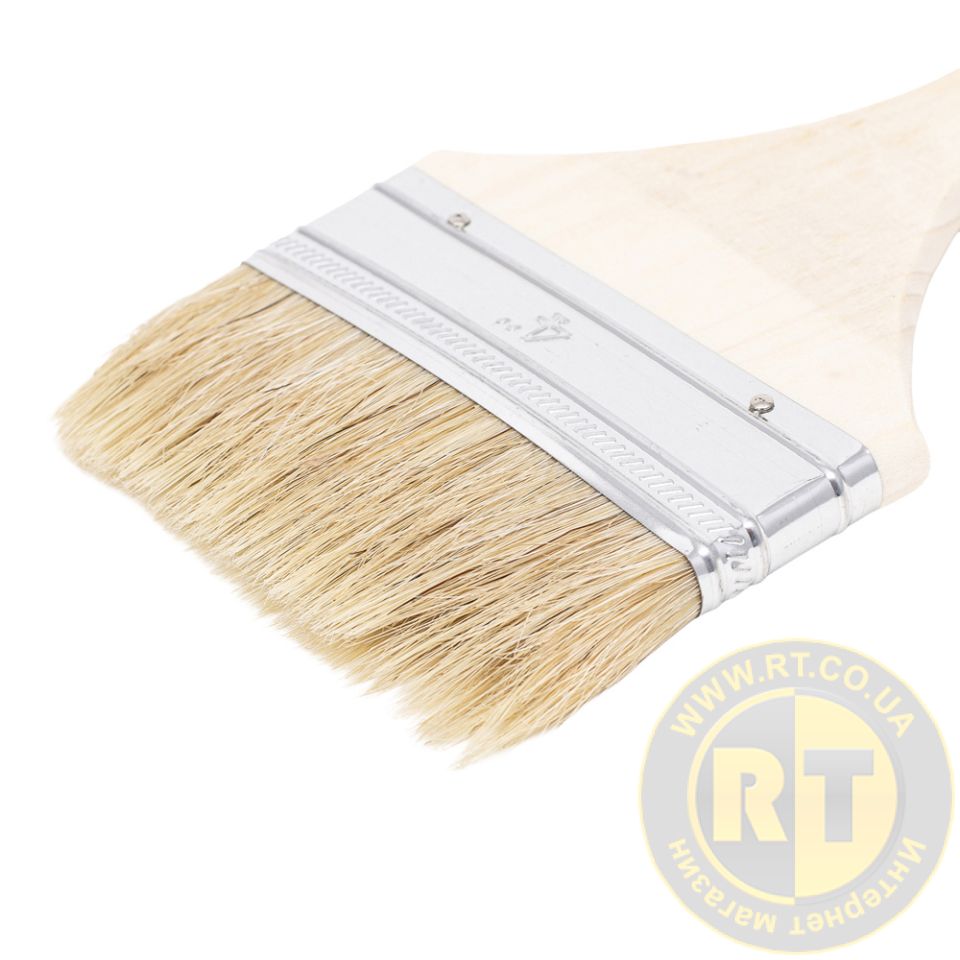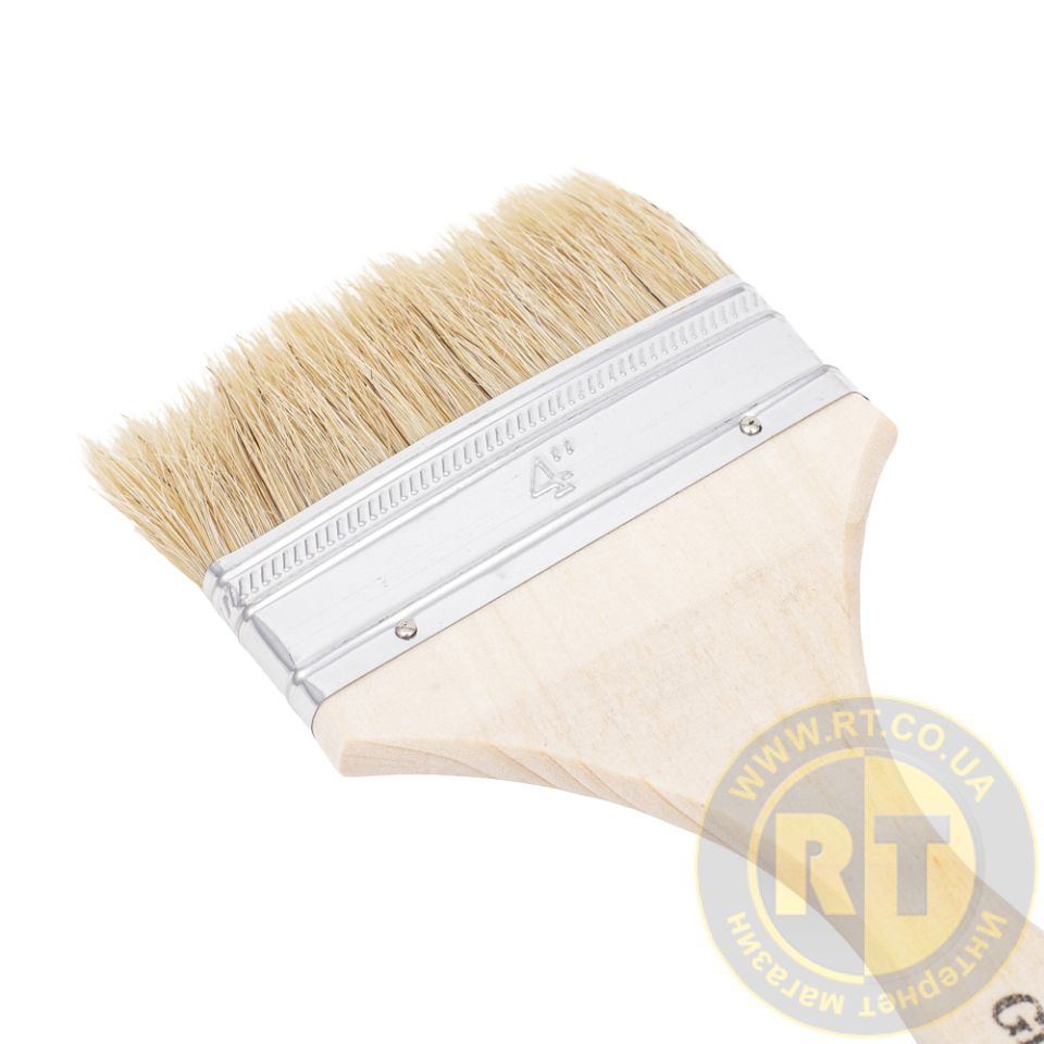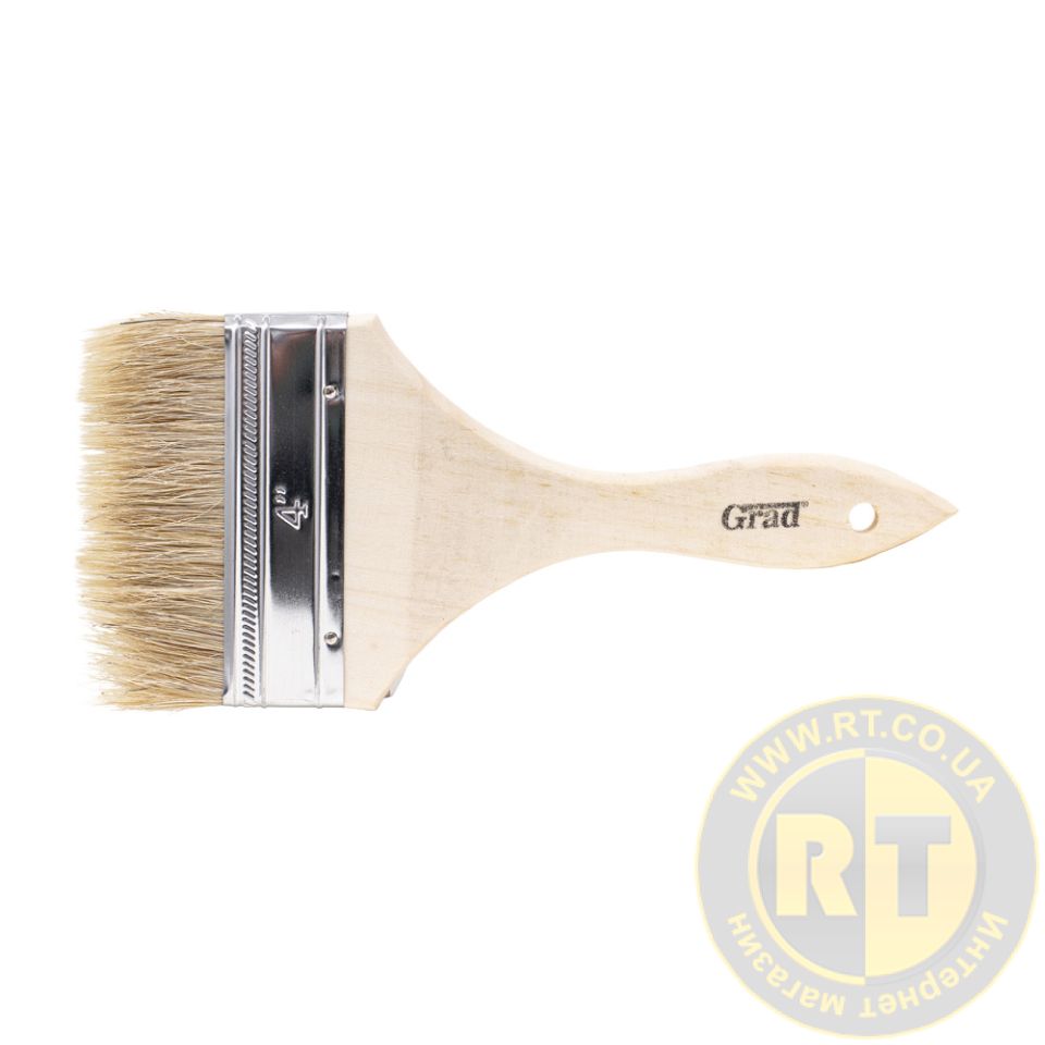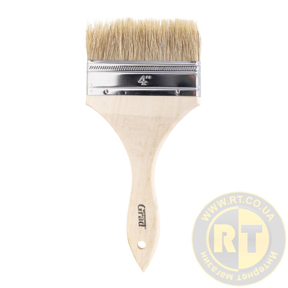 Пензель флейцевий економ 4" GRAD (8301175) виготовлений з натуральної щетини для роботи з усіма видами лакофарбової продукції, в тому числі і агресивними.