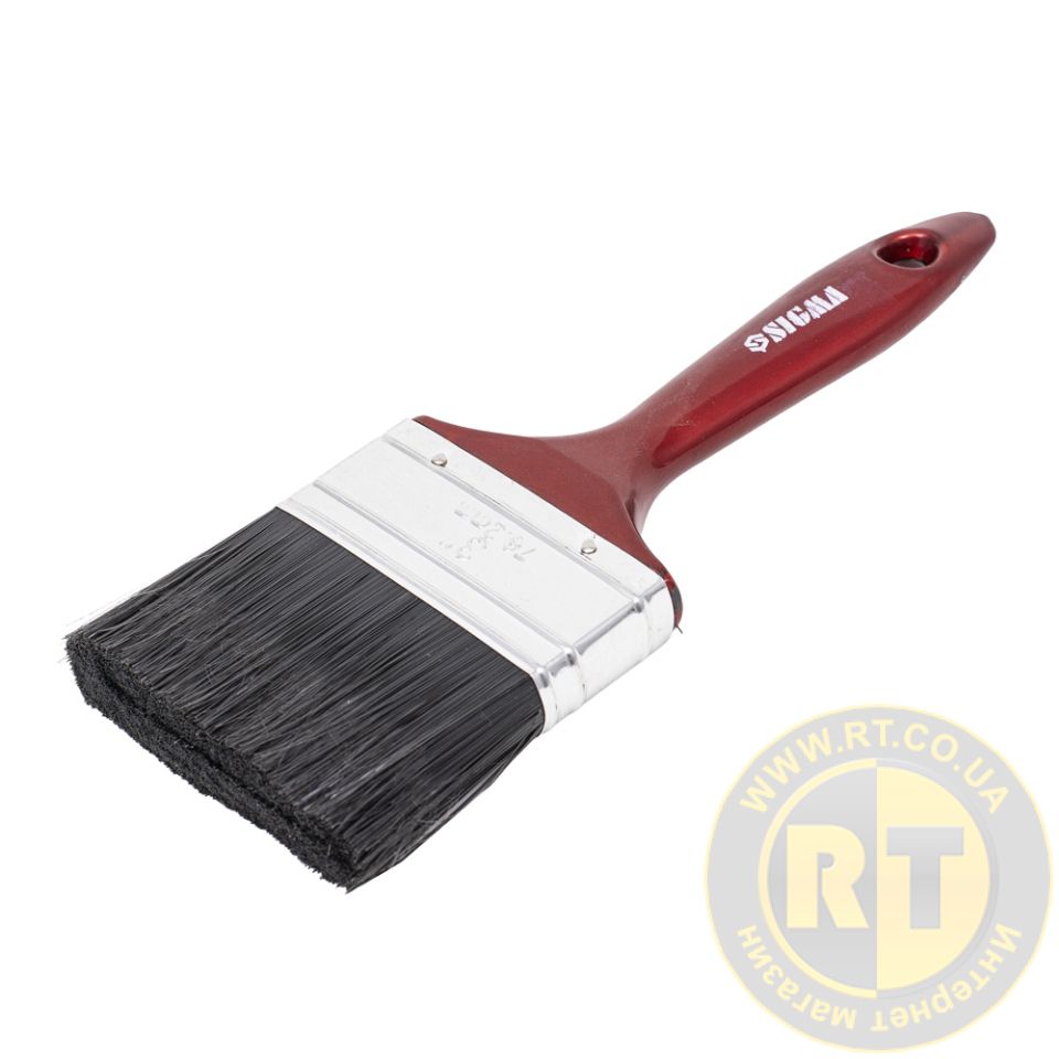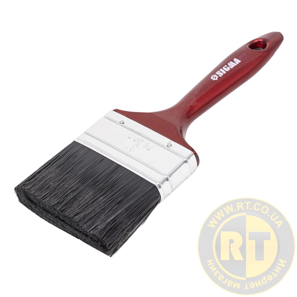 Пензель флейцевий "Лакра" 3" SIGMA (8302361) виготовлений зі штучної щетини чорного кольору для роботи з усіма видами лакофарбової продукції, найбільш ефективний для лаків, призначений для внутрішніх і зовнішніх робіт.