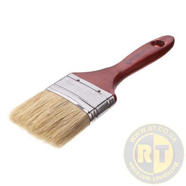 Пензель призначений для будь-яких малярських робіт всередині та зовні приміщення. Використовується з олійними фарбами, будь-якими видами лаків та антисептиками. Натуральна щетина від природи має розщеплені кінчики та чудово зафарбовує поверхні.