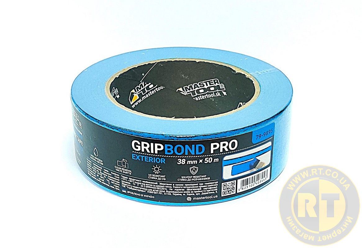 Стрічка малярська для фасадних робіт GripBond Pro Exterior 38 мм×50 м синя MASTERTOOL 79-9895