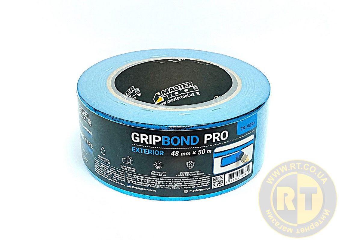 Стрічка малярська для фасадних робіт GripBond Pro Exterior 48мм×50м синя MASTERTOOL 79-9896