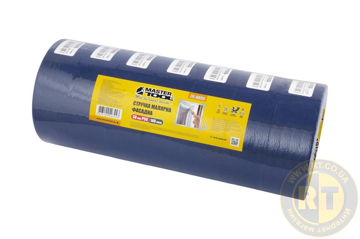 Стрічка малярська фасадна 38 мм Р50 синя MASTERTOOL 79-9895