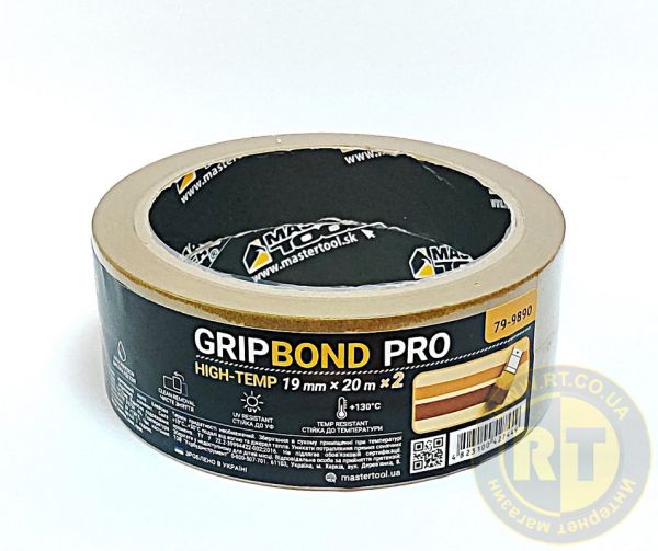 Стрічка малярська високотемпературна GripBond Pro High-Temp 19 мм×20 м 2 шт коричнева MASTERTOOL 79-9890