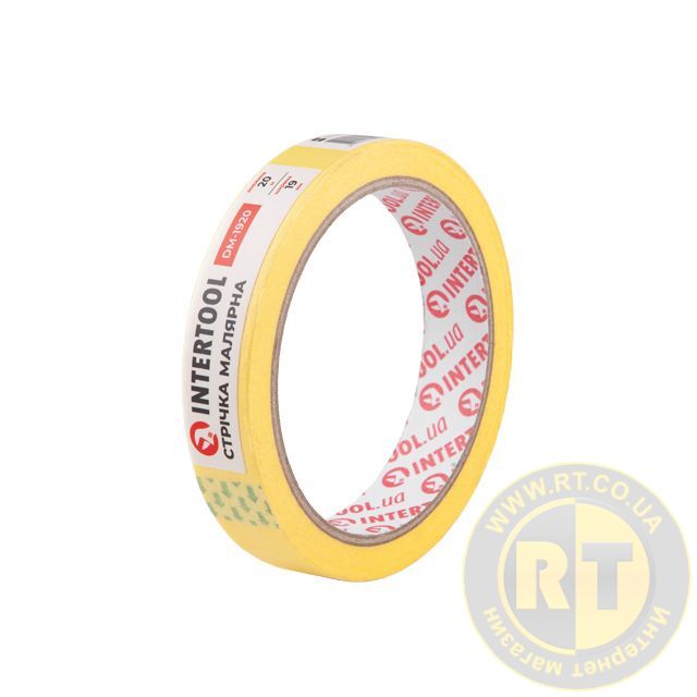 Стрічка малярна 19мм, 20м, жовта INTERTOOL DM-1920