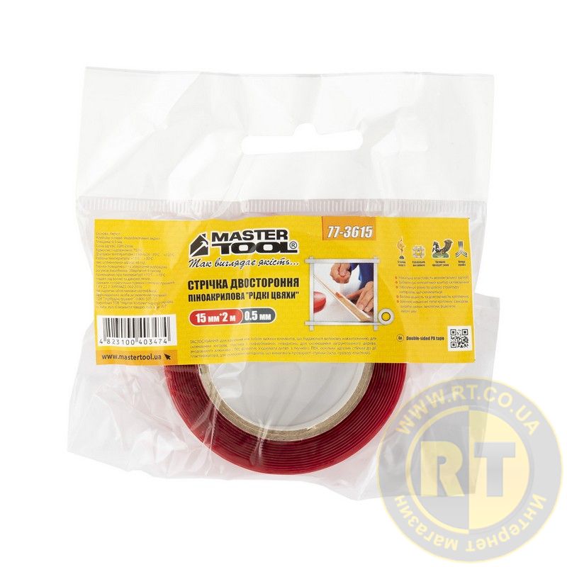 Стрічка двостороння "Рідкі цвяхи" піноакрилова 0.5 мм/15 мм 2 м MASTERTOOL 77-3615