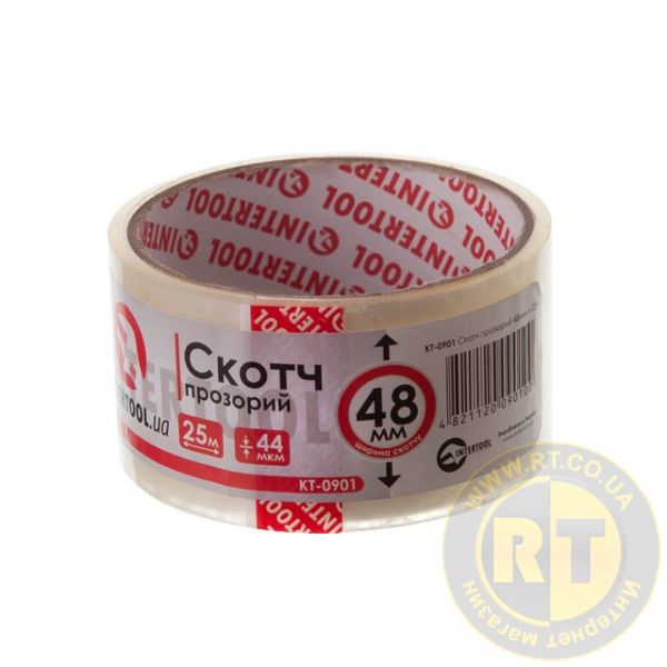 Скотч прозорий, 25 м × 48 мм, 44 мкм INTERTOOL KT-0901