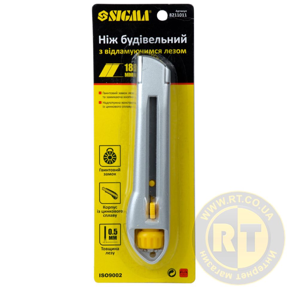 Ніж будівельний (металевий корпус) лезо 18мм гвинтовий замок SIGMA (8211011) призначений для розрізання із застосуванням значних зусиль різних матеріалів: килимових покриттів, картону, тканини, паперу.