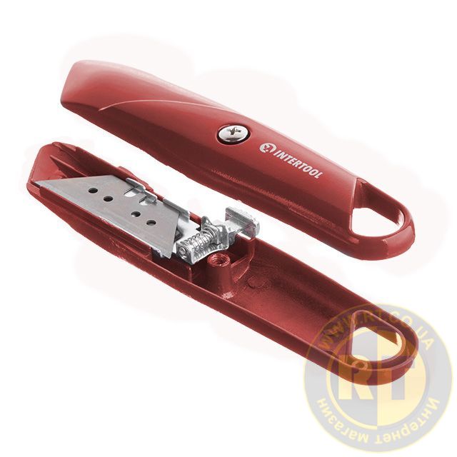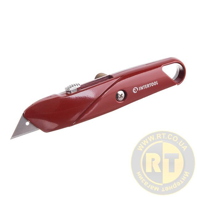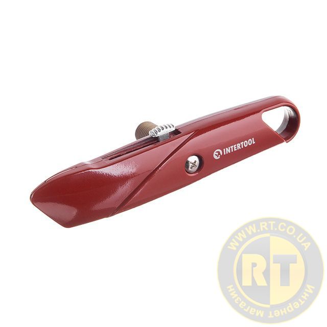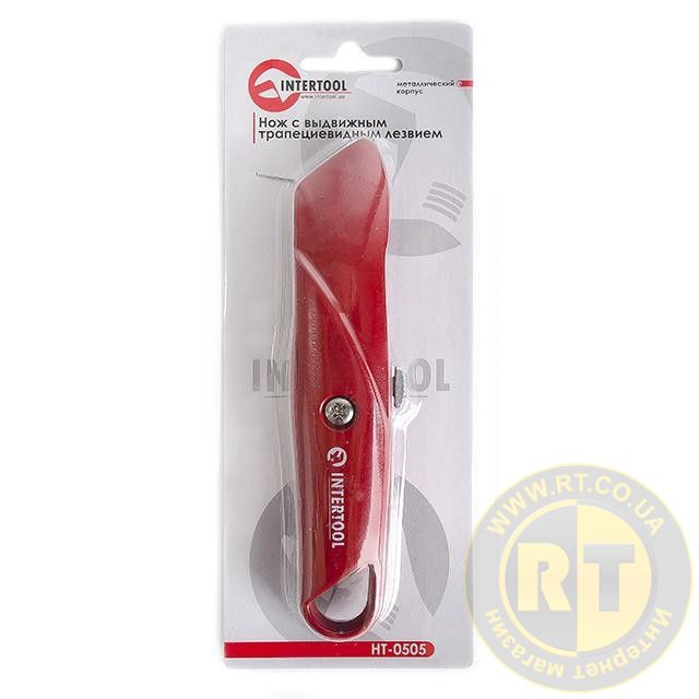 Ніж трапецієподібний, 60×19 мм, з висувним лезом, металевий корпус INTERTOOL HT-0505