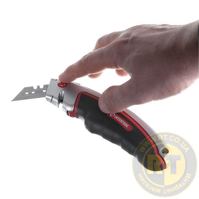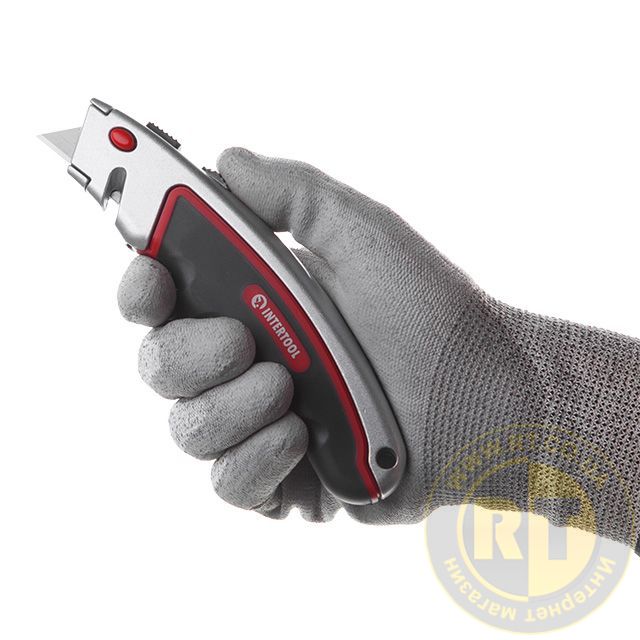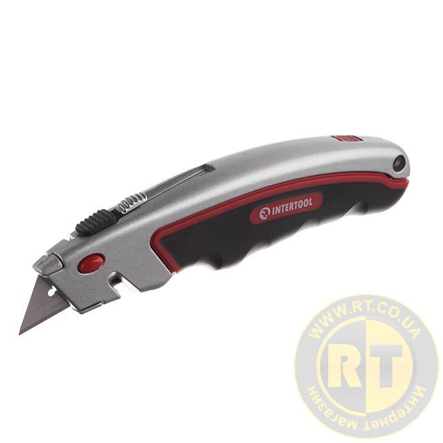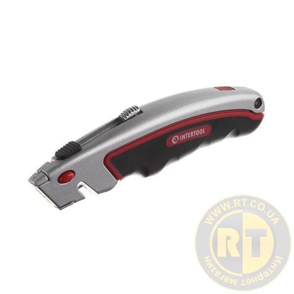 Ніж трапецієподібний, 60×19 мм, з висувним лезом, металевий корпус, прогумована рукоятка INTERTOOL HT-0516