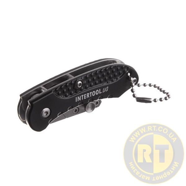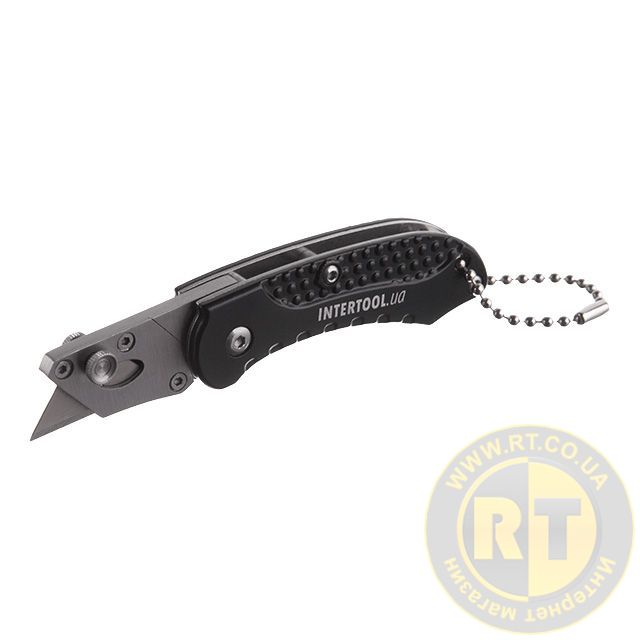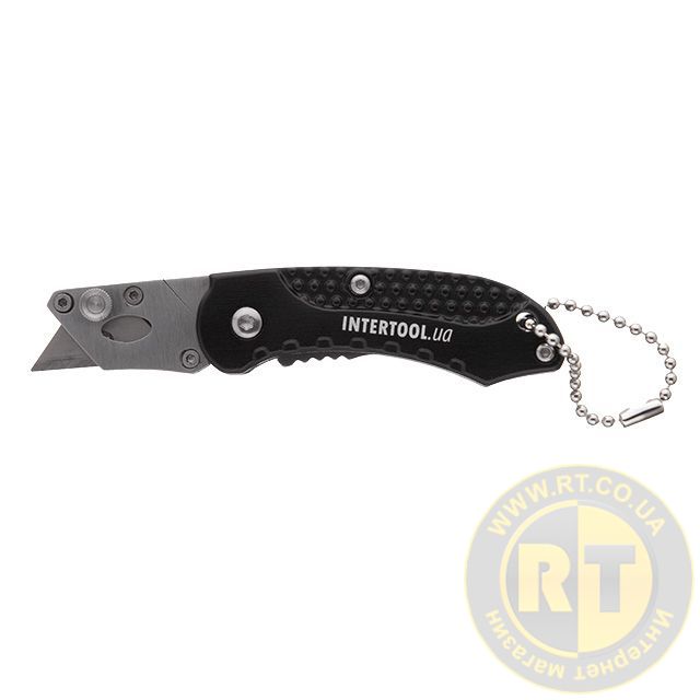 Ніж трапецієподібний, міні, 9 мм, складаний, сталь SK5, алюмінієва рукоятка INTERTOOL HT-0532