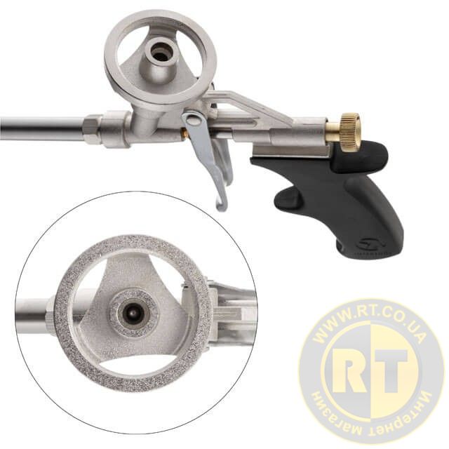 Суцільнолитий металевий корпус ергономічної форми легкий та надійний. Не втомлює руки та не дає шансів для самовільного витоку піни.