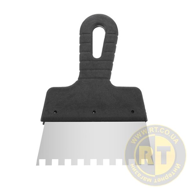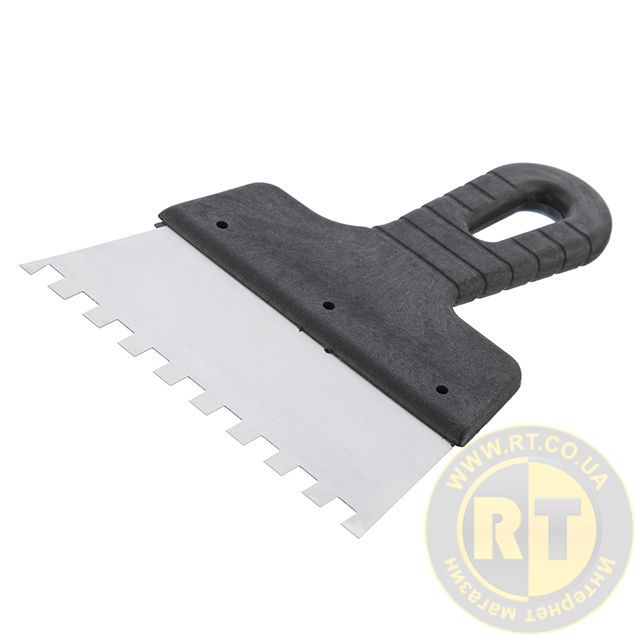Шпатель будівельний призначений для нанесення клейових та цементних розчинів на керамічну плитку, натуральний камінь при виконанні облицювальних робіт. Такий шпатель може використовуватися для внутрішніх та зовнішніх малярських робіт та оздоблення фасадів.