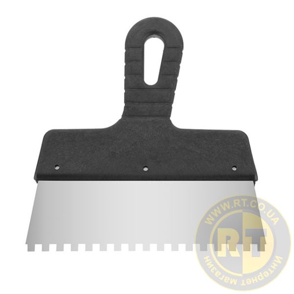 Шпатель будівельний призначений для нанесення клейових та цементних розчинів на керамічну плитку, натуральний камінь при виконанні облицювальних робіт. Такий шпатель може використовуватися для внутрішніх та зовнішніх малярських робіт та оздоблення фасадів.