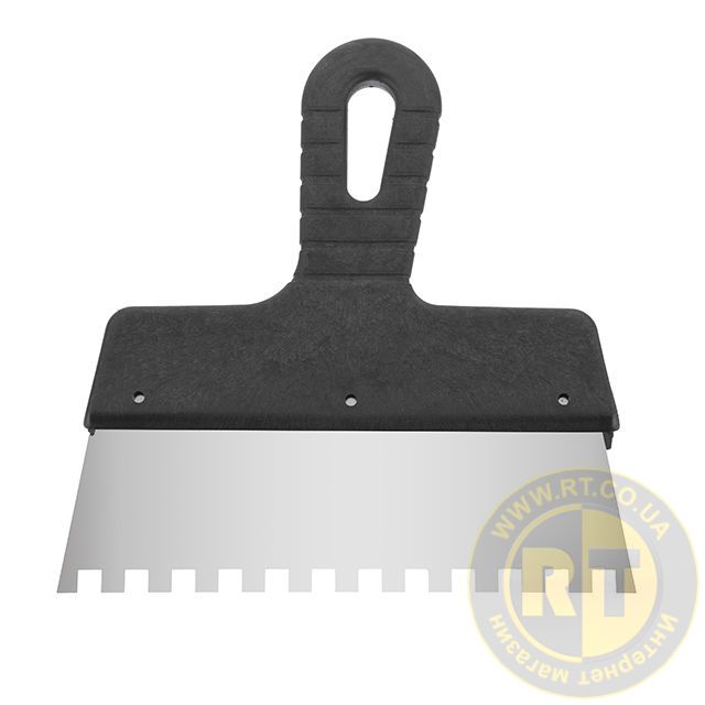Шпатель будівельний призначений для нанесення клейових та цементних розчинів на керамічну плитку, натуральний камінь при виконанні облицювальних робіт. Такий шпатель може використовуватися для внутрішніх та зовнішніх малярських робіт та оздоблення фасадів.