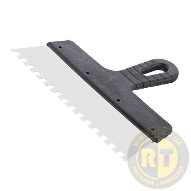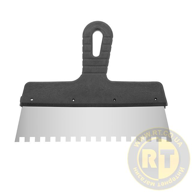 Шпатель будівельний призначений для нанесення клейових та цементних розчинів на керамічну плитку, натуральний камінь при втконанні облицювальних робіт. Такий шпатель може використовуватися для внутрішніх та зовнішніх малярських робіт та оздоблення фасадів.