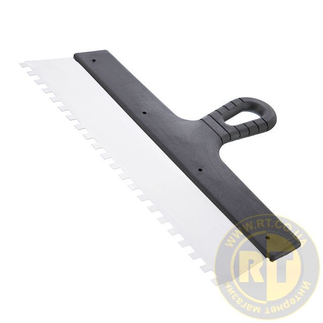 Шпатель будівельний призначений для нанесення клейових та цементних розчинів на керамічну плитку, натуральний камінь при виконанні облицювальних робіт. Такий шпатель може використовуватися для внутрішніх та зовнішніх малярських робіт та оздоблення фасадів.