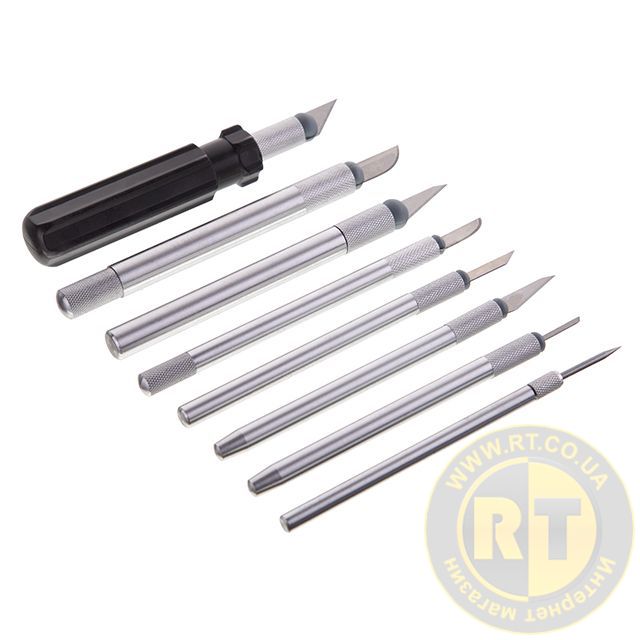 Набір скальпелів для точних робіт стане чудовим помічником у роботі з папером, картоном, деревом, пластмасами, гумою, текстилем, шкірою тощо. Це ідеальний набір лез для хобі та різних прикладних точних робіт.