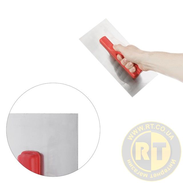 Затирачка з нержавійної сталі має оптимальну пружність для ефективного нанесення та розрівнювання матеріалу по поверхні. Легка та комфортна, вона дозволяє обробляти великі обсяги робіт. Залишки розчину легко видаляються з поверхні леза. Після використання затирку необхідно швидко очистити та зберігати сухою, таким чином ви точно подовжите строк служби інструмента.
